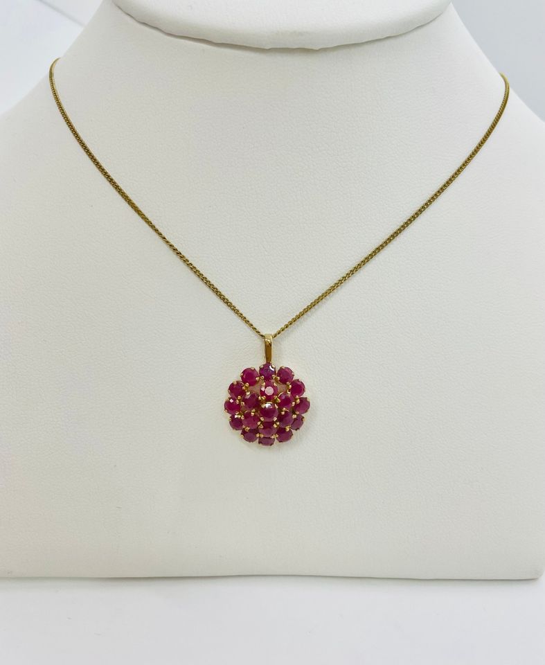 10K Yellow Gold Natural Rubies Cluster Pendant 16mm