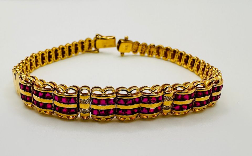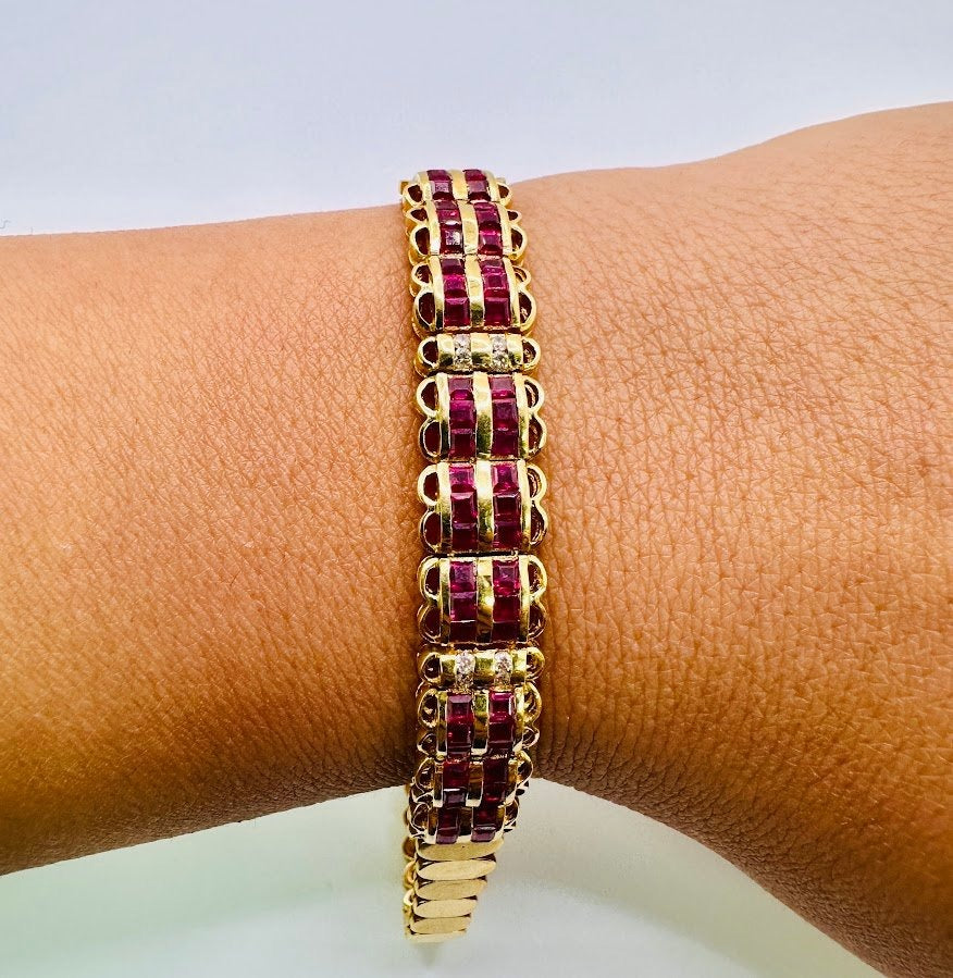 18Karat Yellow Gold Rubies & Diamonds Vintage Bracelet sets with 2.63CTW Diamonds + 0.12CTW Diamonds.