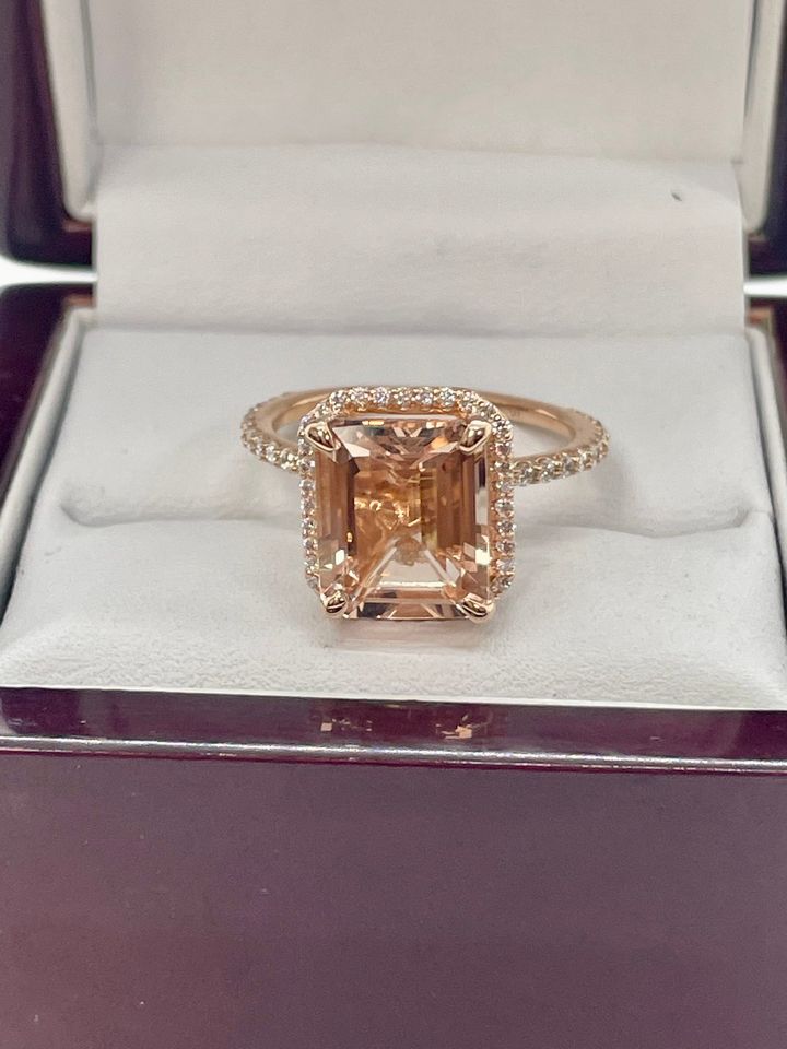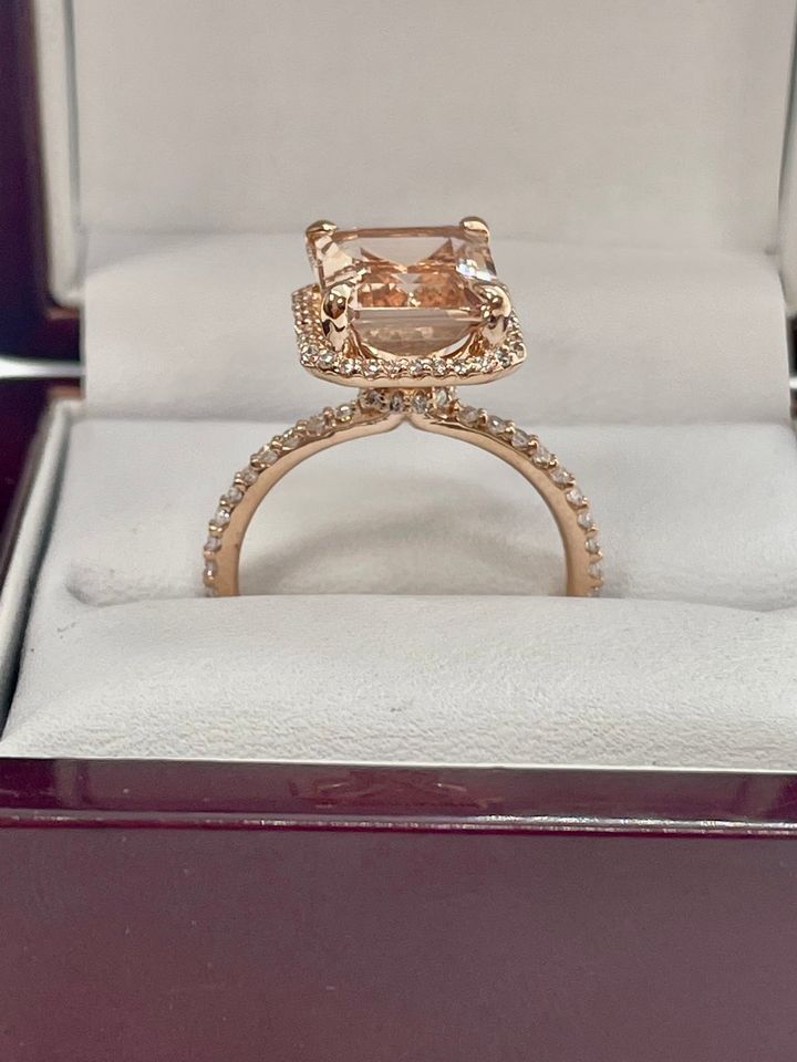 Elegant 4.24 Carat Natural Morganite&Diamonds Halo Engagement with a hidden diamond Halo