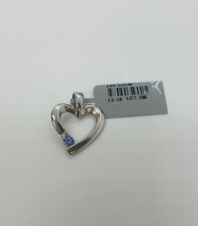 Beautiful 14K White gold and natural Tanzanite and Diamond Heart Pendant