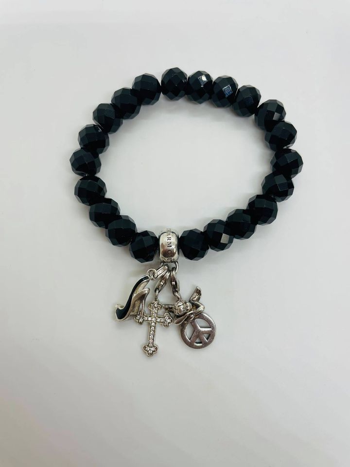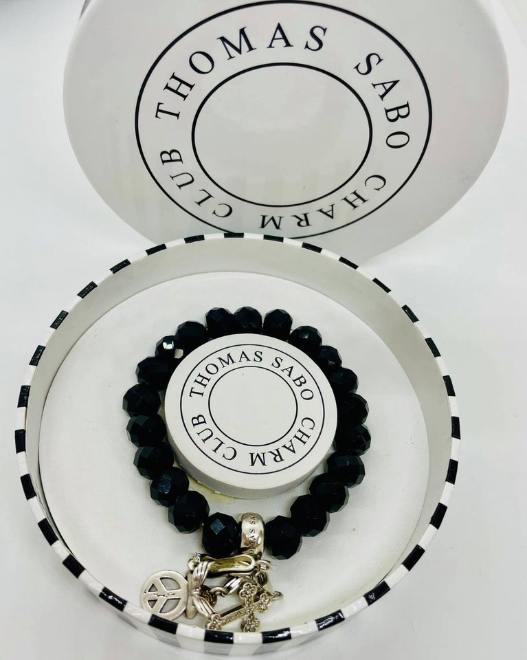 Beautiful Thomas Sabo Black Crystal expandable bracelet with 3 sterling silver Thomas Sabo Charms!