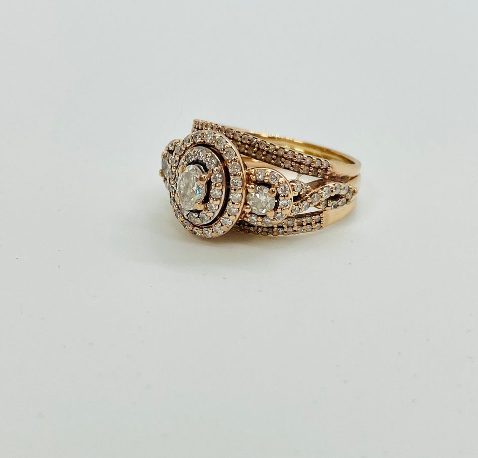 Beautiful Cluster Engagement Ring with Oval centre Natural Diamond 0.25 carat and 54 Round Diamonds accented with split open shank design.