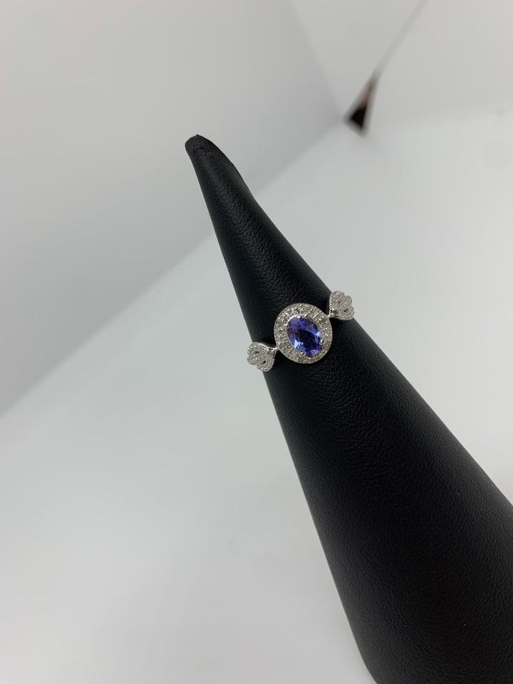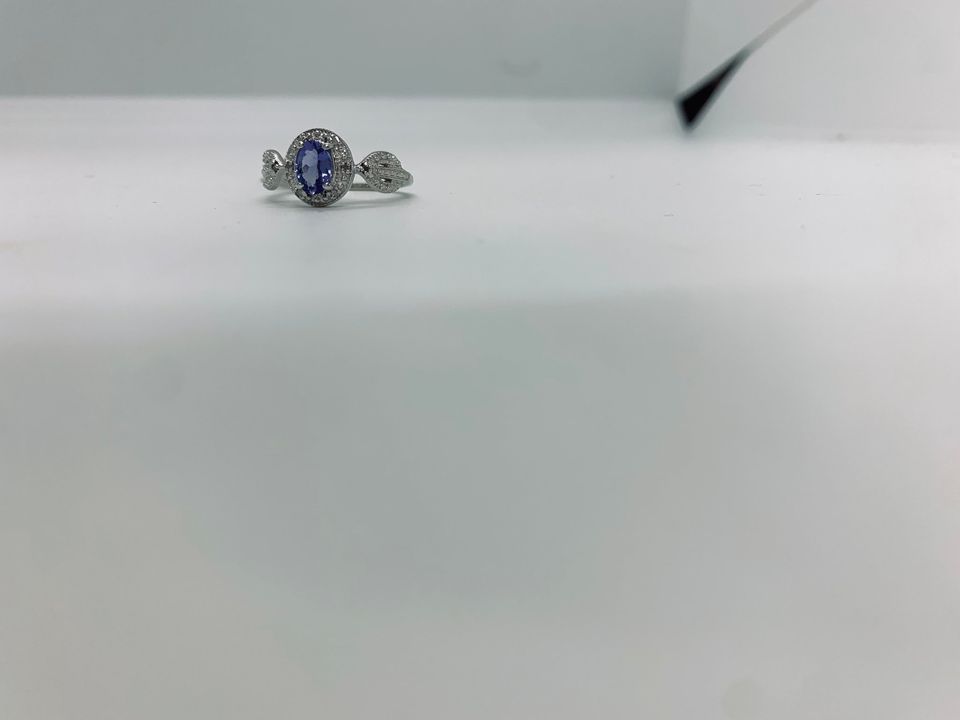 Elegant Sterling Tanzanite and Diamonds Ladie’s Ring sets with 55 diamonds and a natural oval Tanzanite.