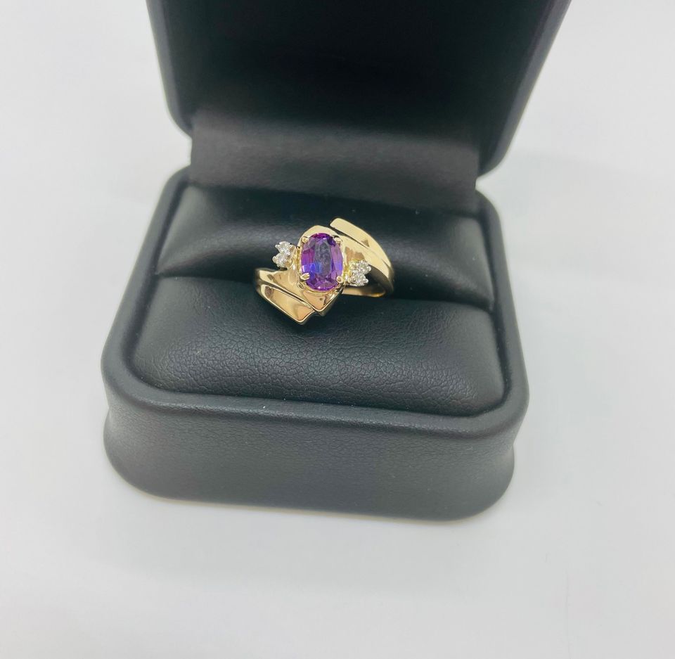February Birthstone Showcase Clearance Amethyst & Diamonds Ring in 10K Yellow Gold