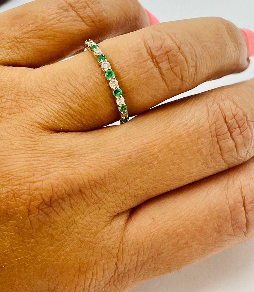 Gorgeous 0.25CTW Natural Diamonds & Colombian Emeralds Stackable Band in 10K