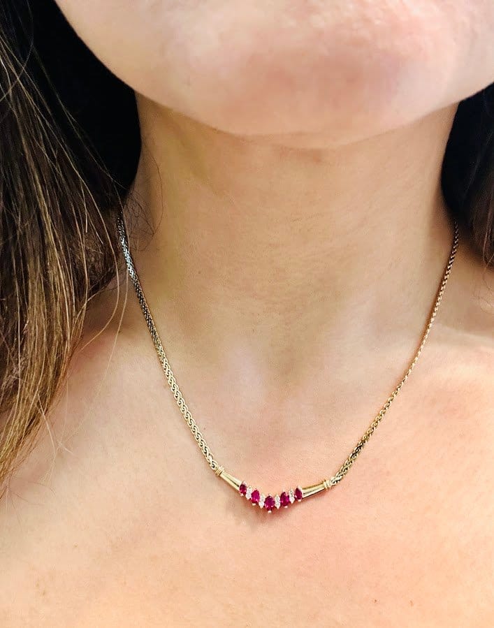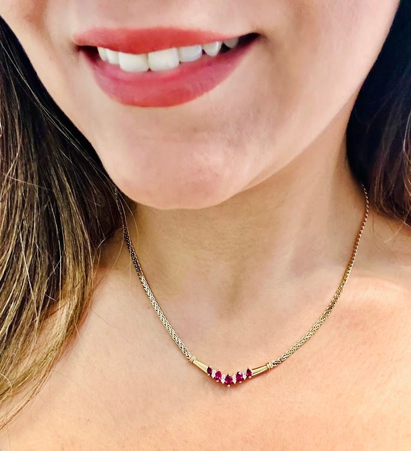 High End AAA Rubies & Diamonds 14Karat Necklace