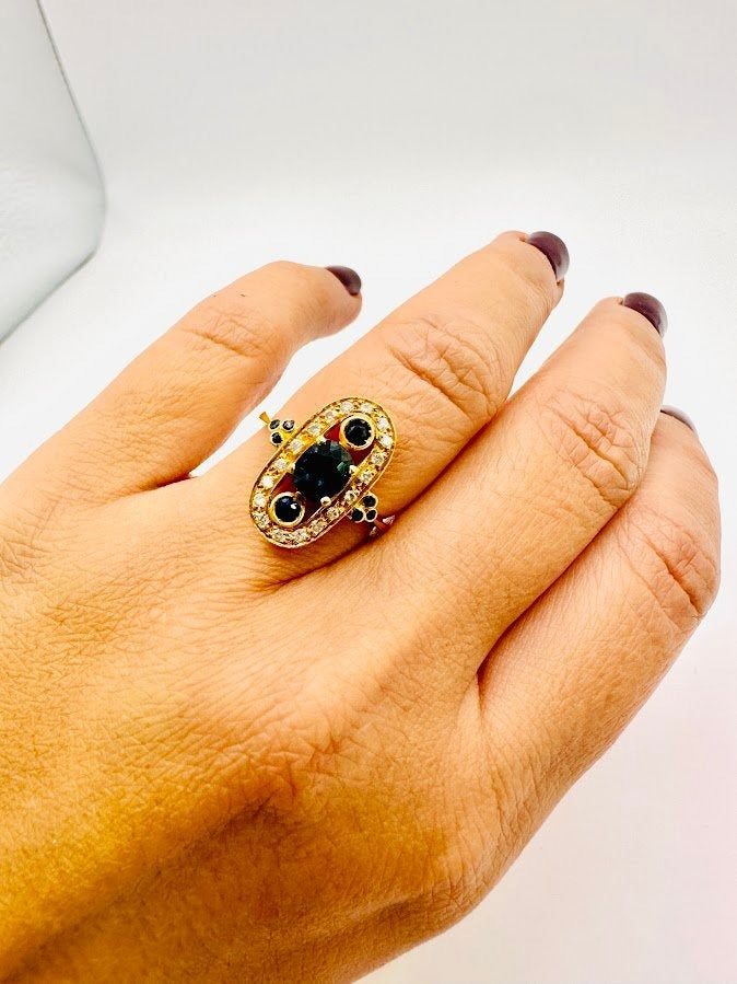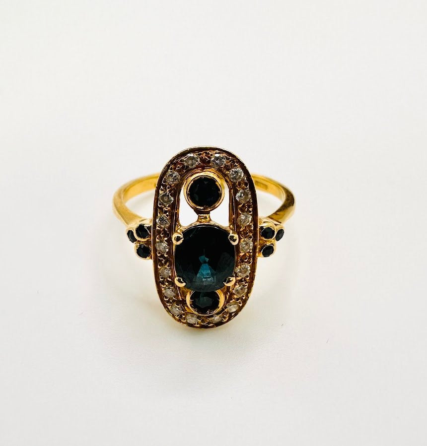High End Consignment Jewellery 18Karat Natural Sapphires & Diamonds Vintage Ring , Ring sets with 1.22 CTW Natural Blue Sapphires and 0.21CTW Natural Diamonds ” finger size 7″