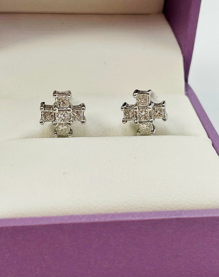 Natural Diamonds Cross Earrings in 18 Karat Gold 0.50CTW