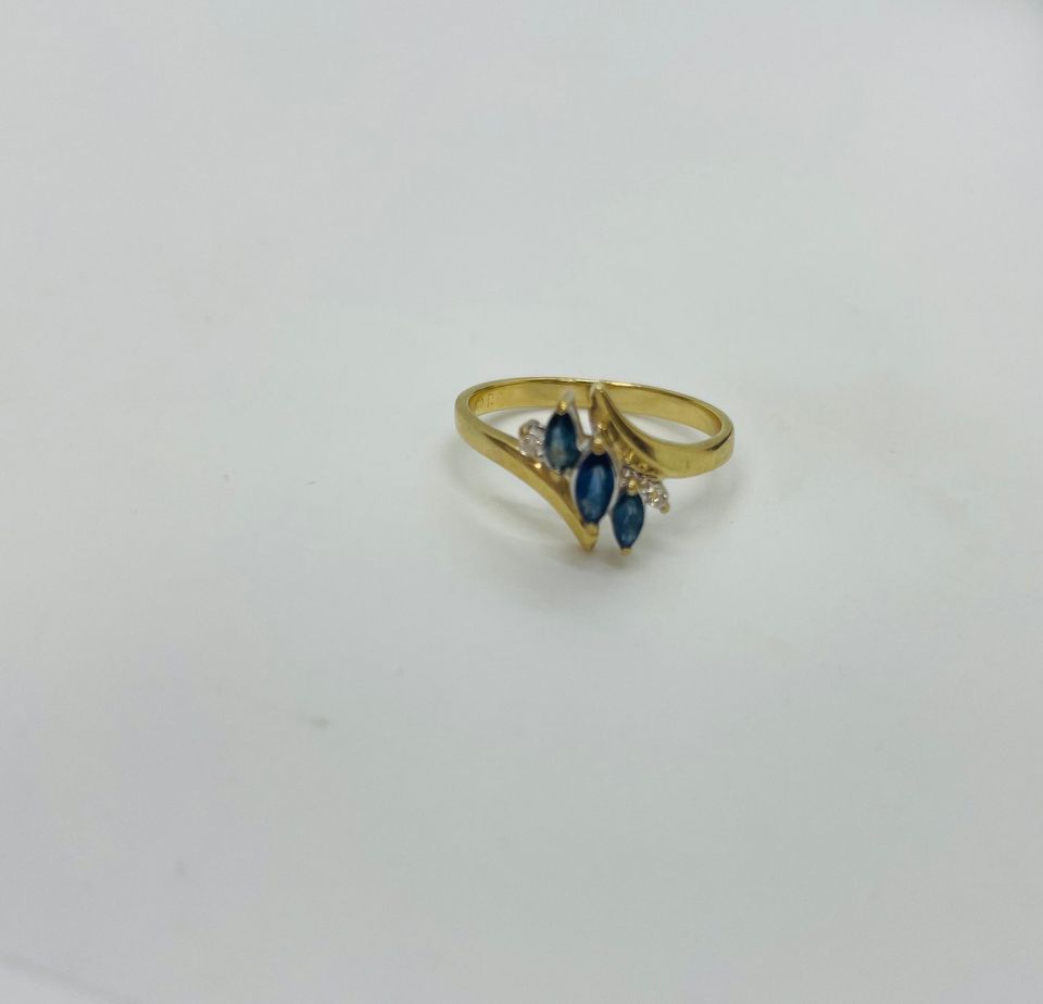 Simple 10Karat Yellow Gold sapphires and diamonds Ring sets with 3 Marquis shape blue sapphires and 2 round genuine diamonds.