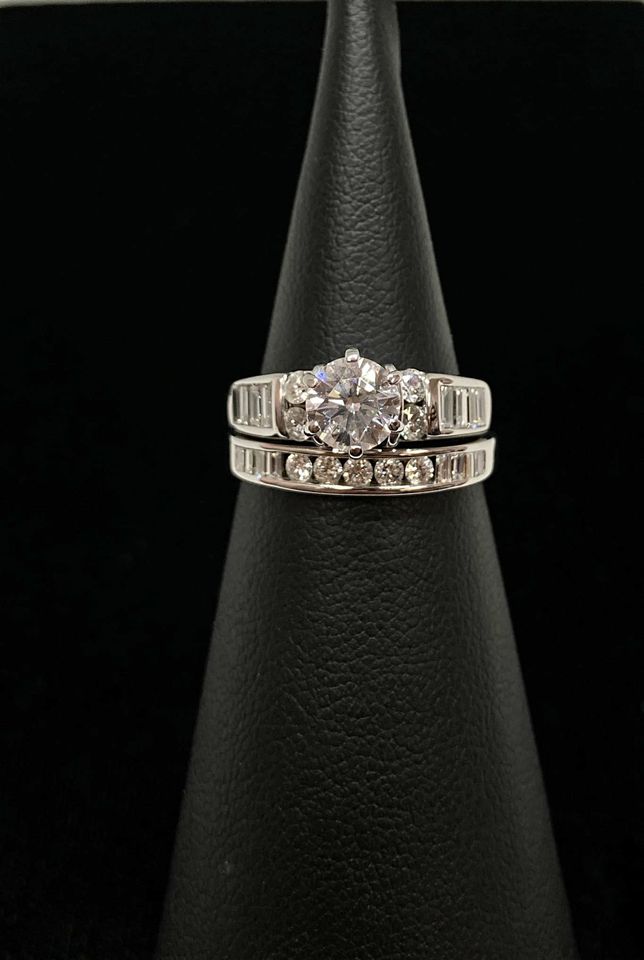Stunning 14K White Gold Wedding Ring Set 0.78ct with 17 Natural Diamonds I1-G Color with matching band with 9 Diamonds