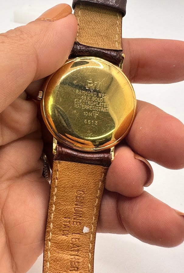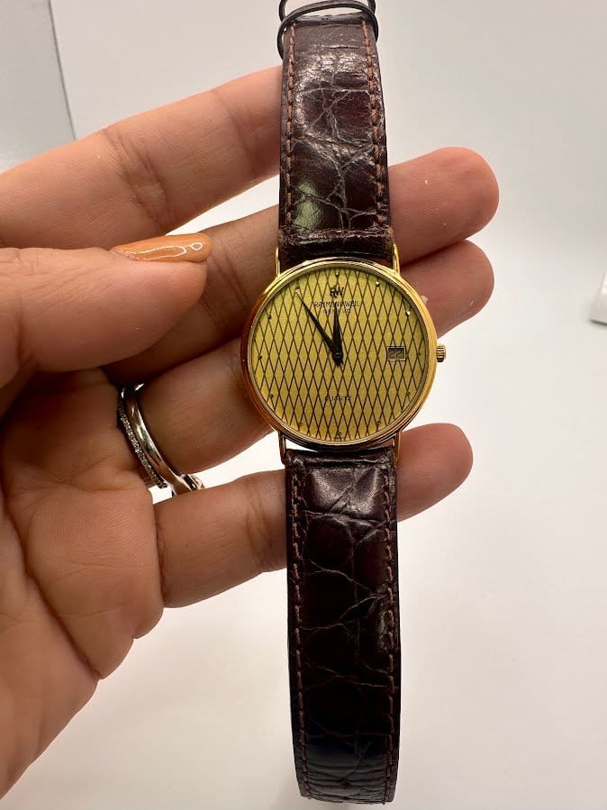 Vintage Raymond Weil 18Karat Electroplated in New Condition with 18mm Genuine Leather strap , working and On Time